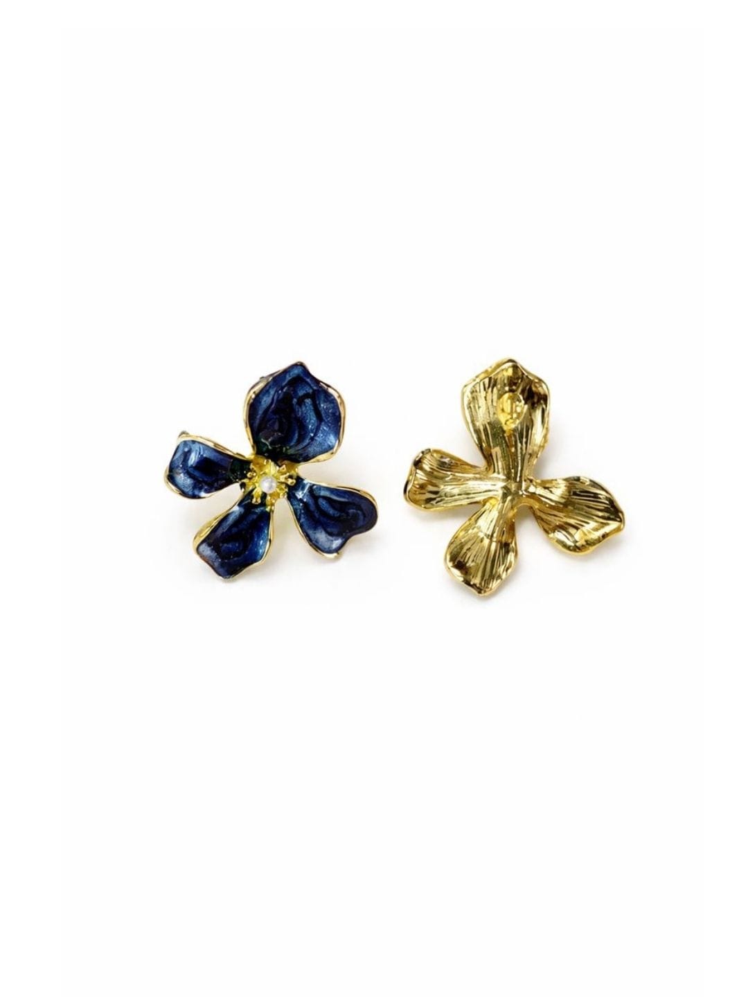 - Design: Four-petal floral motif with textured black enamel detailing and gold accents