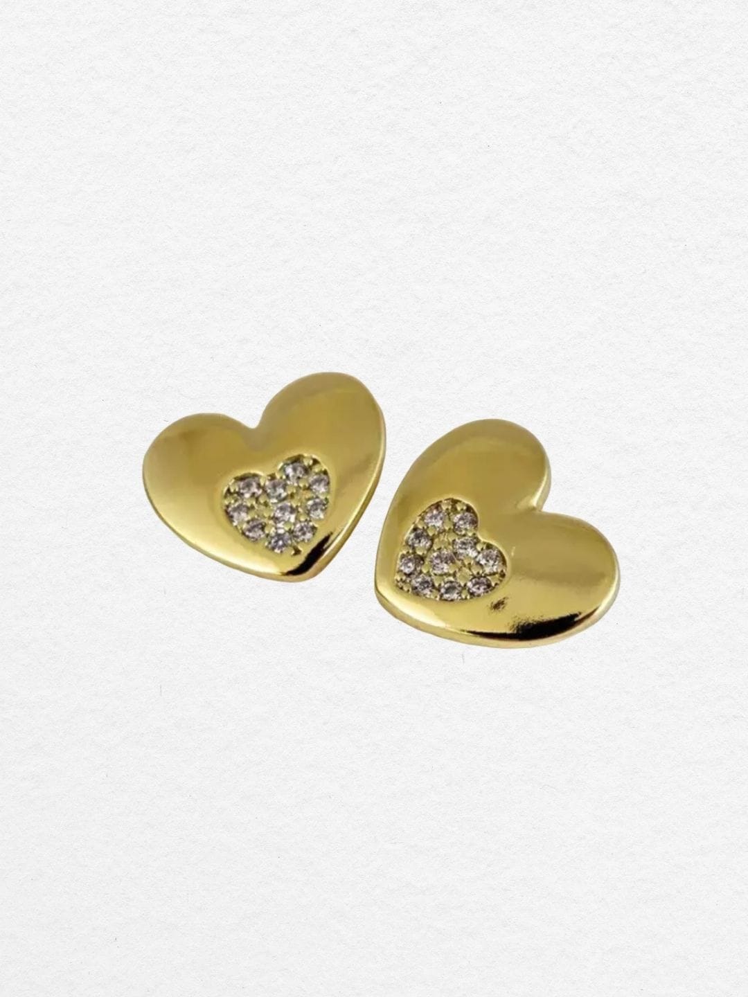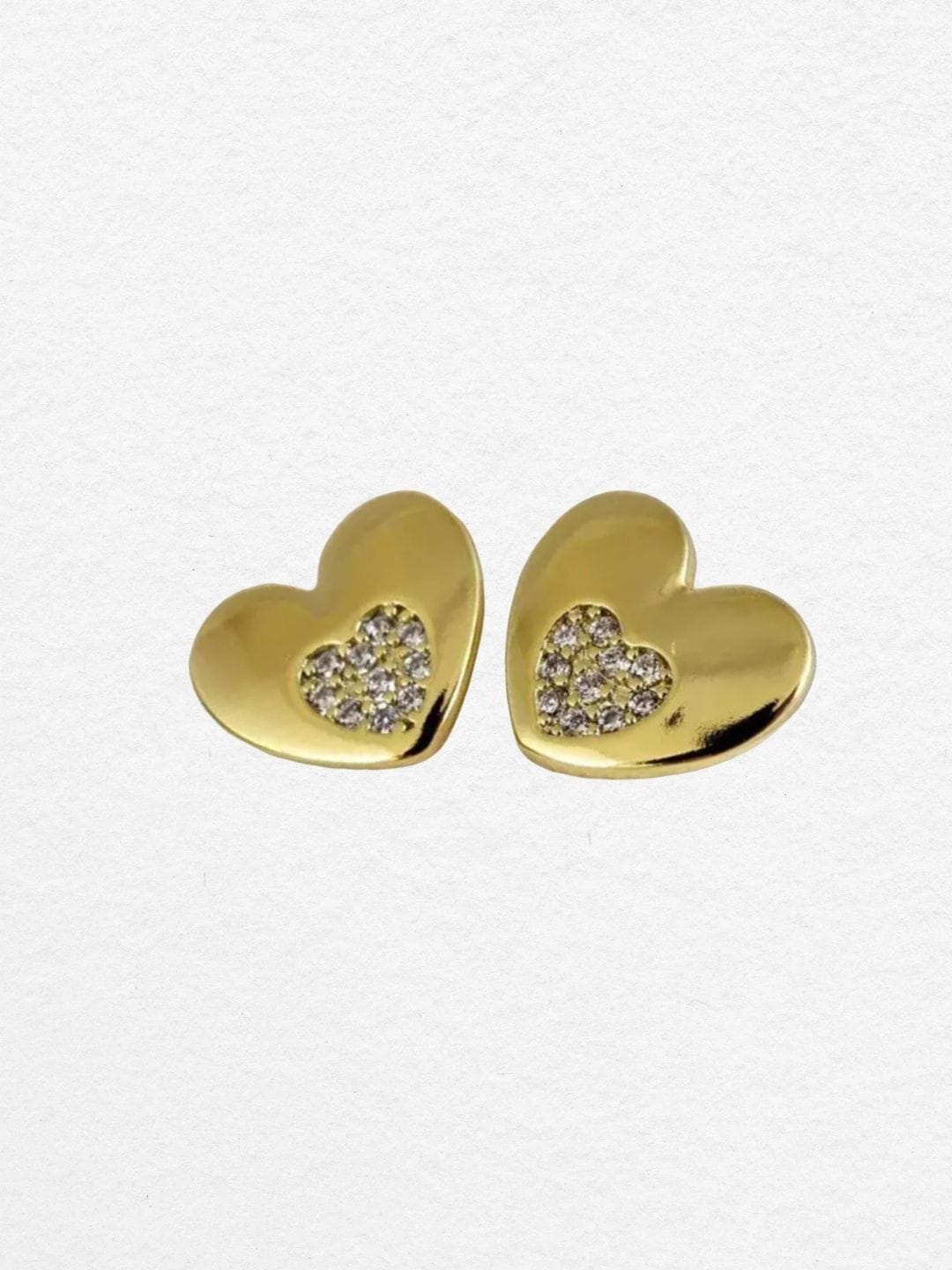 Chic gold-toned heart studs embellished with a sparkling crystal heart centre — perfect for minimal, everyday elegance.