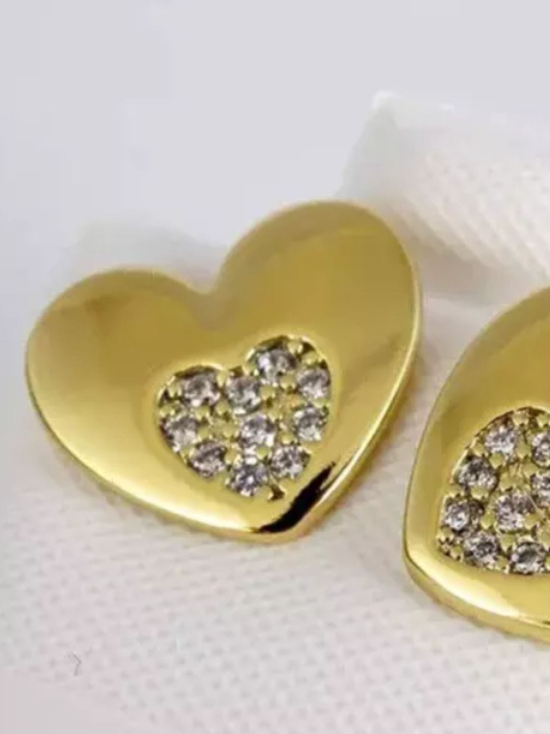 - Design: Glossy gold heart base with crystal-embedded mini heart