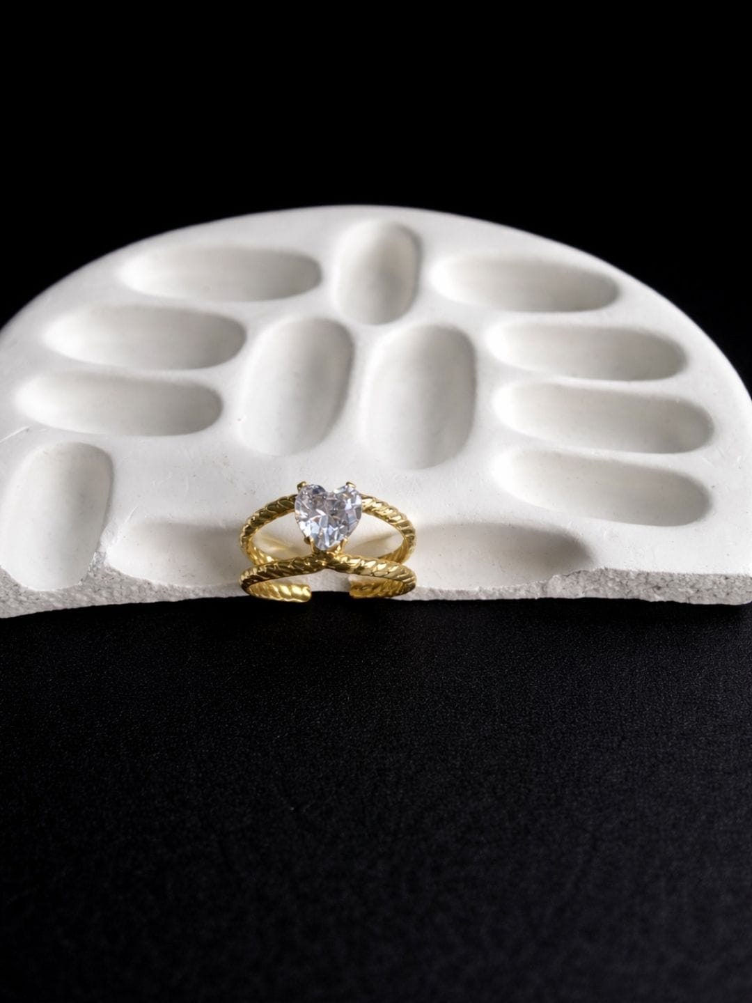 A graceful gold-tone adjustable ring featuring a sparkling heart-shaped American Diamond (AD) stone. Finished with an anti-tarnish coating, this delicate design adds romantic charm to everyday and occasion wear.