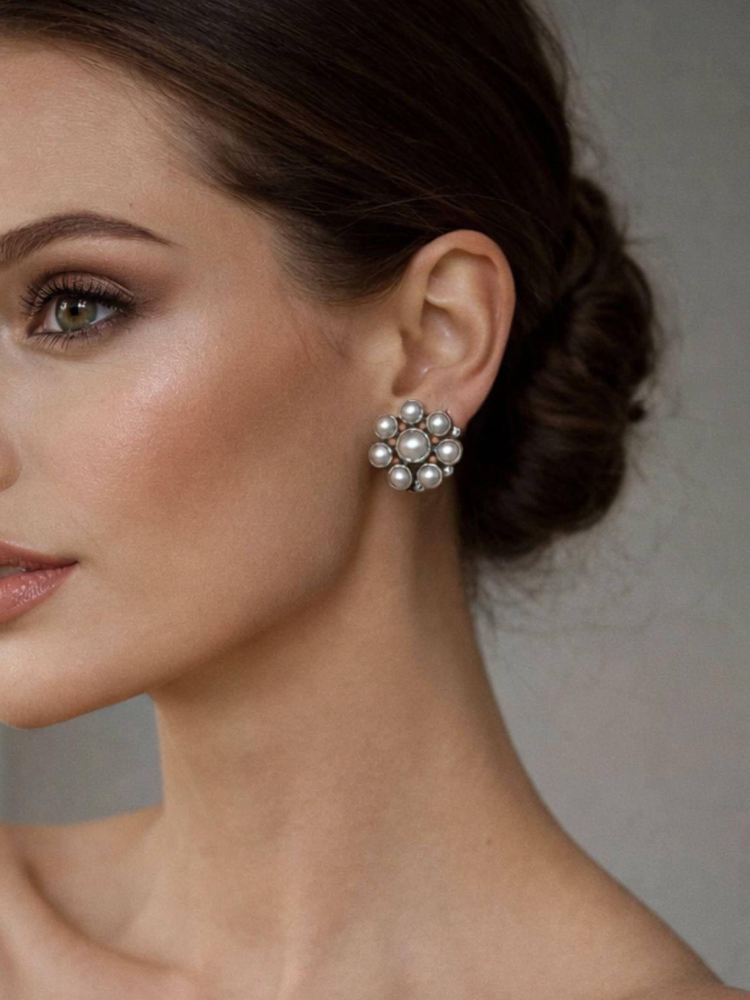 • Design: Circular floral cluster with a central pearl surrounded by smaller pearl accents